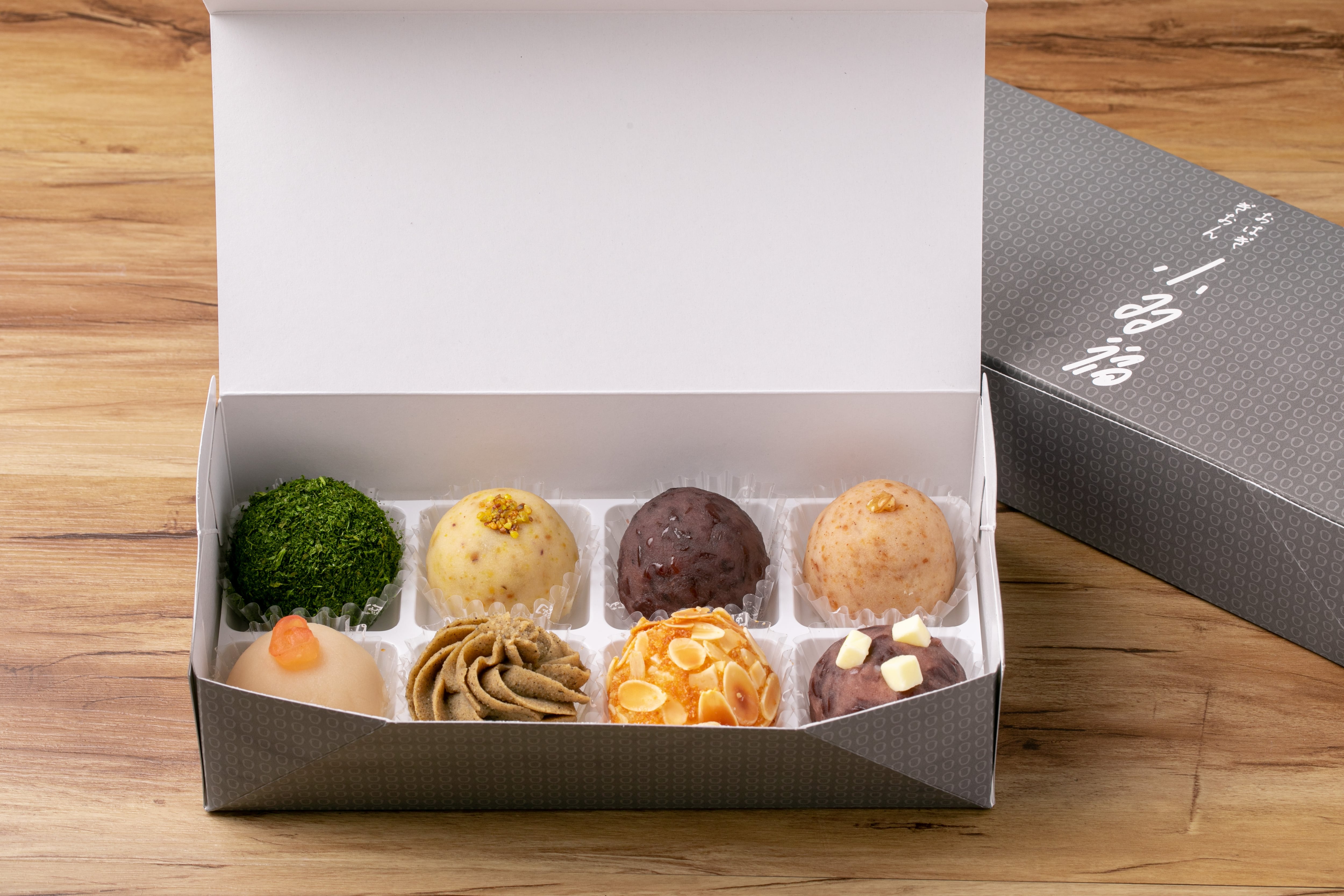 甘さ控えめで、素材にこだわった「小多福のかいらしセット」。贅沢な箱詰めになっていますので、贈り物としても最適です。8種類の味わいが楽しめるのでお土産にも喜ばれます。